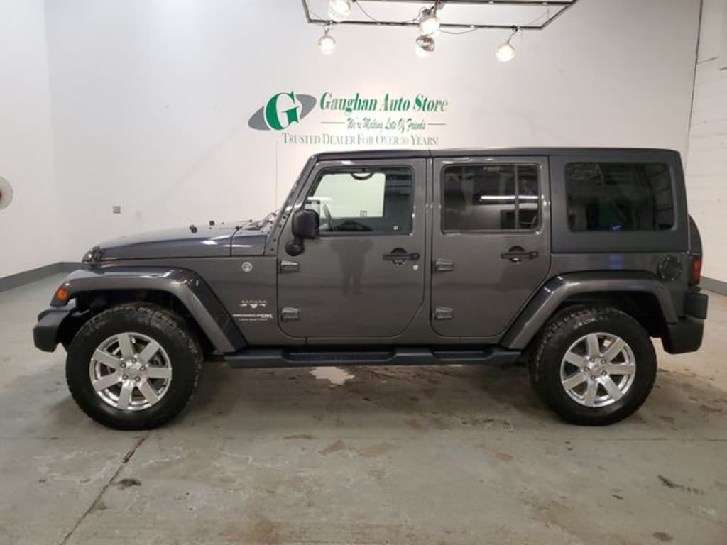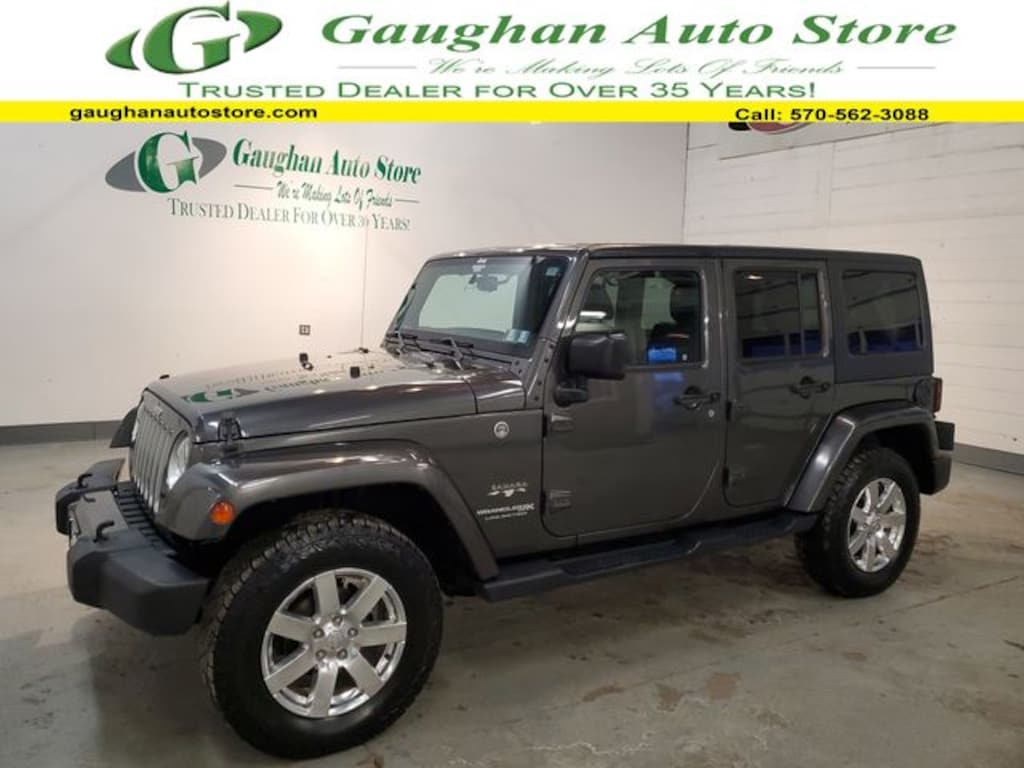 Welcome to Gaughan Auto Store! We are an award winning dealership, voted #1 by a national warranty and national financial institution in customer satisfaction in North Eastern Pennsylvania! Our family has been selling quality pre-owned vehicles for 2 generations and have been a trusted dealer for over 25 years! Our vehicles are all vigorously checked by a 101 point inspection to ensure the quality and safety of not only our vehicles, but our customers as well! This Vehicle features Connectivity Group (Tire Pressure Monitoring Display, Uconnect Voice Command w/Bluetooth, and Vehicle Information Center), Quick Order Package 24G (Body Color Appliques Front Bumper, Body Color Appliques Rear Bumper, and Body Color/Accent Color Grille), Trailer Tow Group (Class II Receiver Hitch and Trailer Tow w/4-Pin Connector Wiring), GPS Navigation, Navigation System, 18" x 7.5" 7-Spoke Polished Aluminum Wheels, 18" x 7.5" Polished Satin Carbon Wheels, 3.21 Rear Axle Ratio, 4-Wheel Disc Brakes, 40GB Hard Drive w/28GB Available, 5-Year SiriusXM Travel Link Service, 6.5" Touchscreen Display, 8 Speakers, ABS brakes, Air Conditioning, Alloy wheels, Alpine 9-Speaker w/All Weather Subwoofer, AM/FM radio: SiriusXM, Audio Jack Input for Mobile Devices, Auto-dimming Rear-View mirror, Brake assist, CD player, Cloth Seats w/Adjustable Head Restraints, Compass, Driver door bin, Driver Height Adjuster Seat, Driver vanity mirror, Dual front impact airbags, Electronic Stability Control, Front anti-roll bar, Front Bucket Seats, Front Center Armrest w/Storage, Front fog lights, Front reading lights, Front Seat Back Map Pockets, Fully automatic headlights, Heated door mirrors, Heated Front Seats, Heavy Duty Suspension w/Gas Shocks, Illuminated entry, Integrated roll-over protection, Leather steering wheel, Low tire pressure warning, Occupant sensing airbag, Outside temperature display, Panic alarm, Passenger door bin, Passenger vanity mirror, Power door mirrors, Power steering, Power windows, R1234YF A/C Refrigerant, Radio data system, Radio: 130, Radio: 430 Nav, Rear anti-roll bar, Remote keyless entry, Remote Start System, Remote USB Port, Security system, SiriusXM Travel Link, Speed control, Split folding rear seat, Steering wheel mounted audio controls, Sunrider Soft Top, Tachometer, Tilt steering wheel, Traction control, Trip computer, and Variably intermittent wipers.